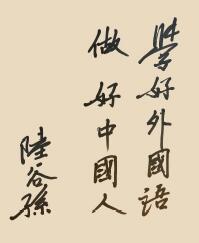 陆谷孙先生一生与复旦结缘,倡导爱国爱校的精神。他讲授的是西方语言文化,又始终坚守中国传统文化。崇尚只是的广博性、开放性和国际化,同时更强调知识服务于国家、服务于民族。他在上世纪90年代所提出的“学好外国语,做好中国人”的口号已成为复旦 丝瓜 师生铭记的院训。