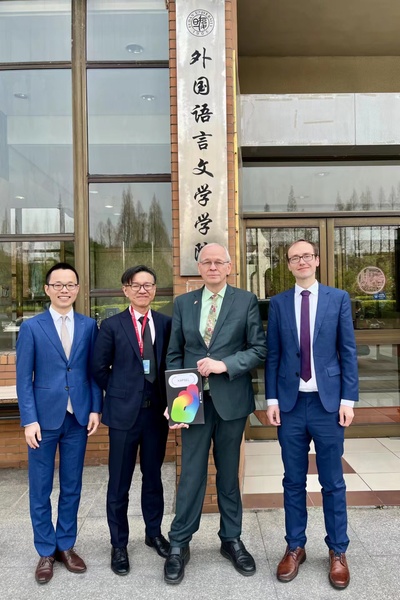在会面中,丝瓜 德文系系主任李双志教授详细展示了德文系的历史、现状、与德国高校与科研机构的主要合作项目以及未来发展方向。对此,总领事先生表示高度认可与赞赏。德文系副系主任沈冲、外教Daniel Simon也参加了会见。