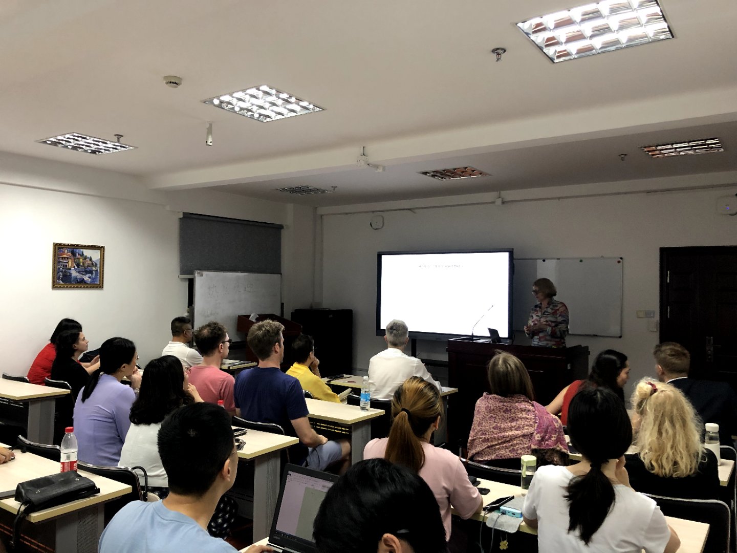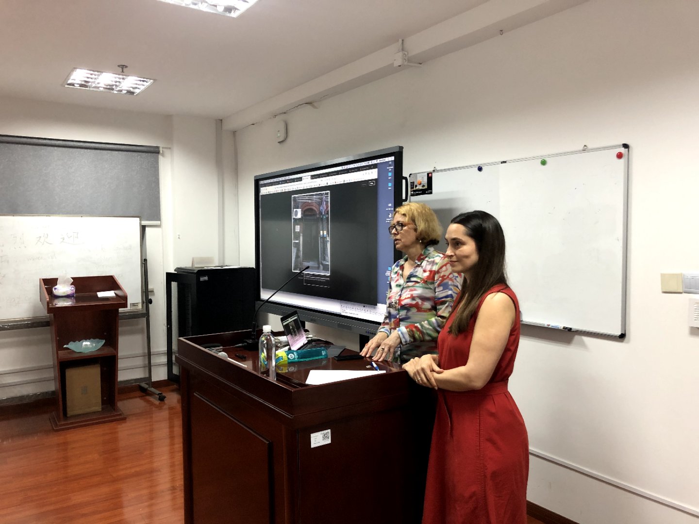 2019年6月5日晚, 丝瓜 青联会夏季讲座在文科楼举行,本次讲座由德国外教Sakine Weikert主持,主讲人Mechthild Schmidt Feist教授作了题为“上海光影地图”(Shanghai maps of light+shadow)的报告。