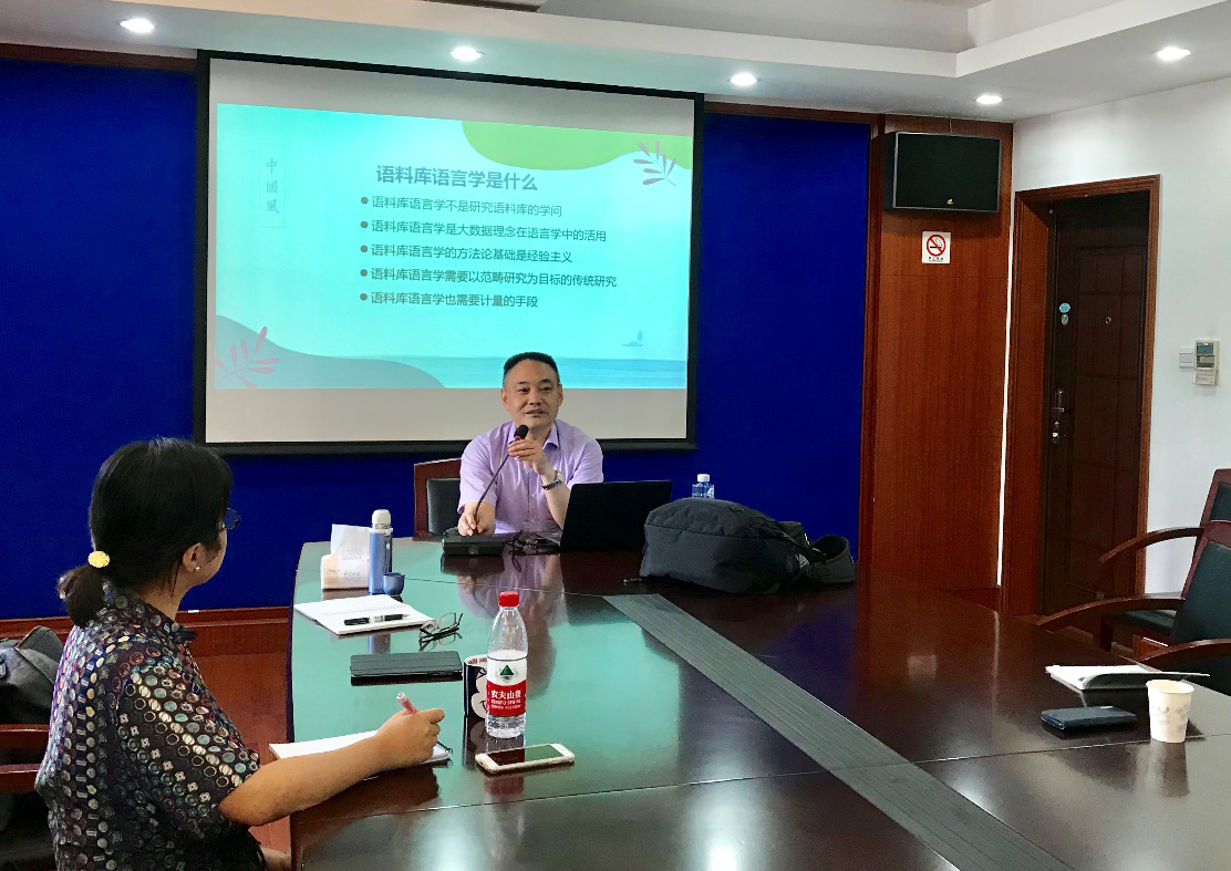 2019年9月24日14:00-16:00, 丝瓜 青联会邀请上海外国语大学语言研究院·中国外语战略研究中心施建军教授做了一场题为“语料库研究方法与实践”的学术讲座。讲座由 丝瓜 日文系杨晓敏老师主持。