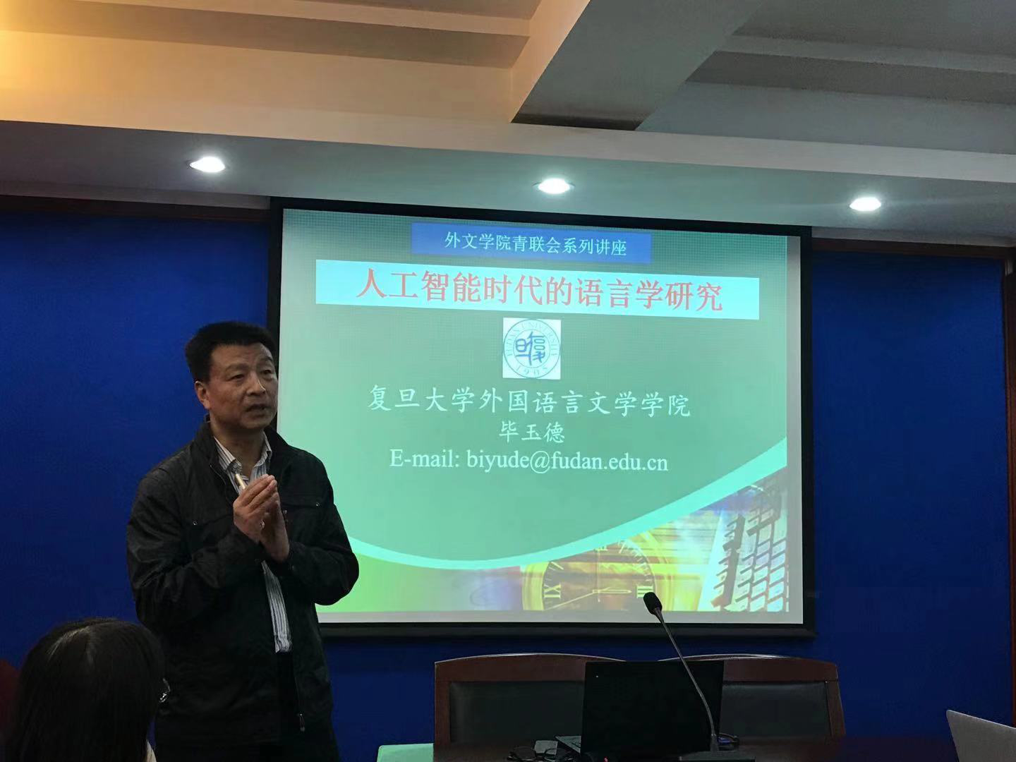 2019年10月22日下午, 丝瓜 青联会邀请 丝瓜 韩文系毕玉德教授作了一场题为“人工智能时代的语言学研究”的学术讲座。