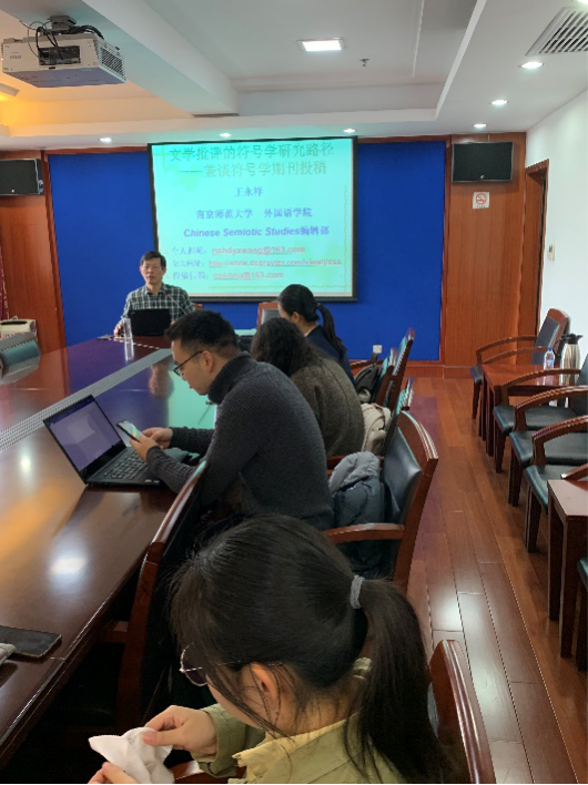 据王永祥教授介绍,在中国首次提出符号学概念的学者是赵元任,1926年其发表了《符号学大纲》一文。近些年来,越来越多的中国学者利用符号学方法论展开研究,在王永祥教授团队的努力下,创刊了Chinese Semiotic Studies等学术园地,在国际上也获得越来越多的认可。随后,王珑兴老师就西班牙学界受罗兰巴特、艾柯和巴赫金影响的情况与王教授做了交流。王教授条例清晰、学理扎实,为师生们日后的教学科研工作提供了更宽广的视角和新的启迪。