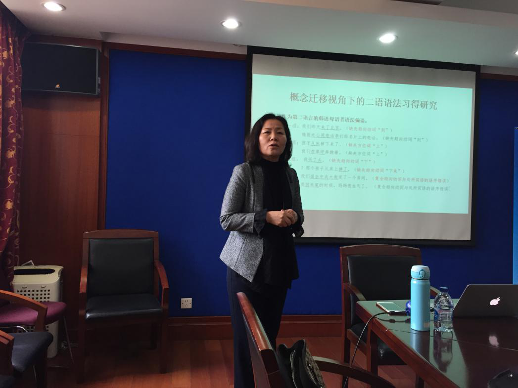 第二场讲座主讲人黄玉花教授首先通过实例分析了二语习得者在学习第二语言的过程中,母语的概念系统如何对二语路径表达产生影响;其次指出二语习得者只有构建完善的概念系统,才能从根本上避免母语向目的语的负迁移现象。