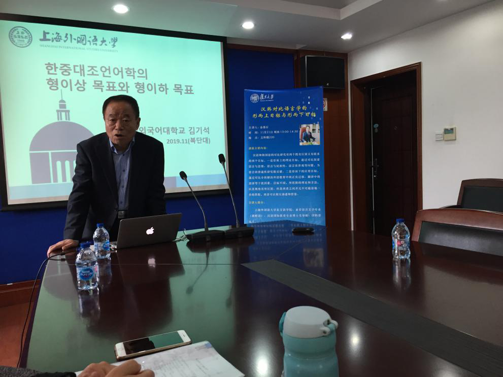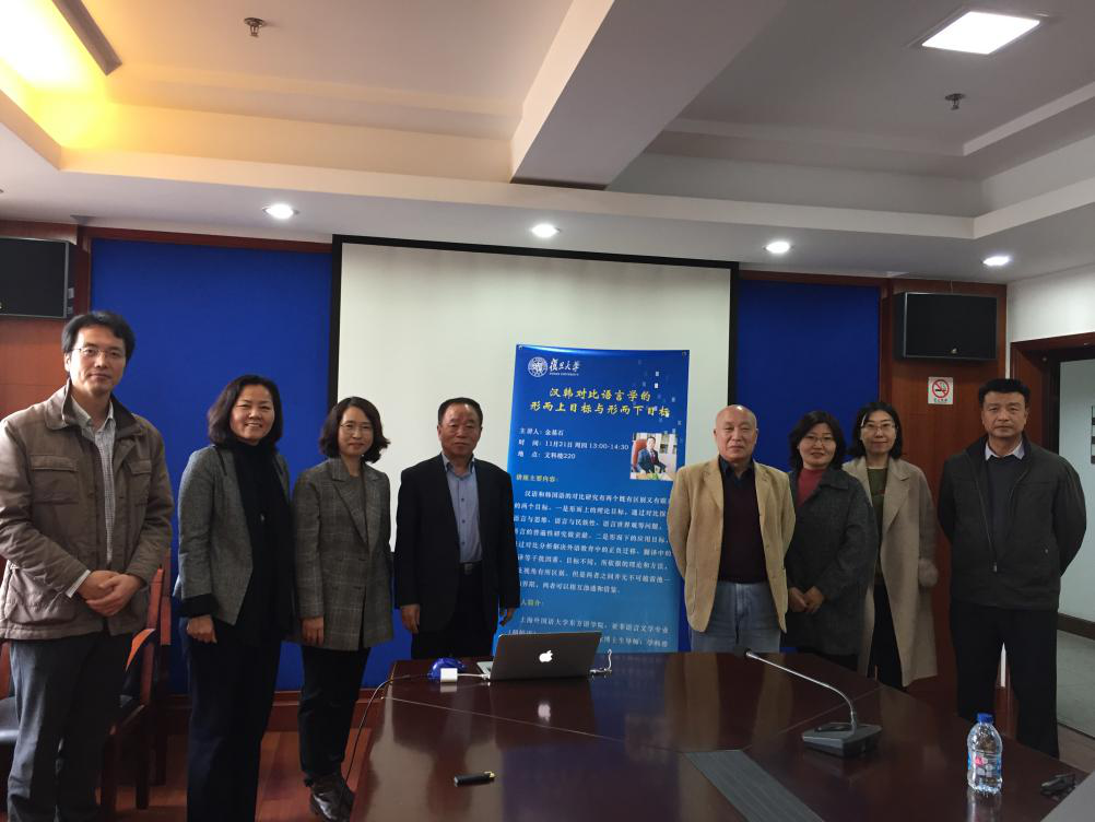 2019年11月21日, 丝瓜 丝瓜 韩文系主办的“汉韩对比语言学的形而上目标与形而下目标”和“概念迁移视角下的二语语法习得研究”讲座于文科楼220会议室举行。讲座分别由上海外国语东方语学院金基石教授和吉林大学文学院黄玉花教授主讲。