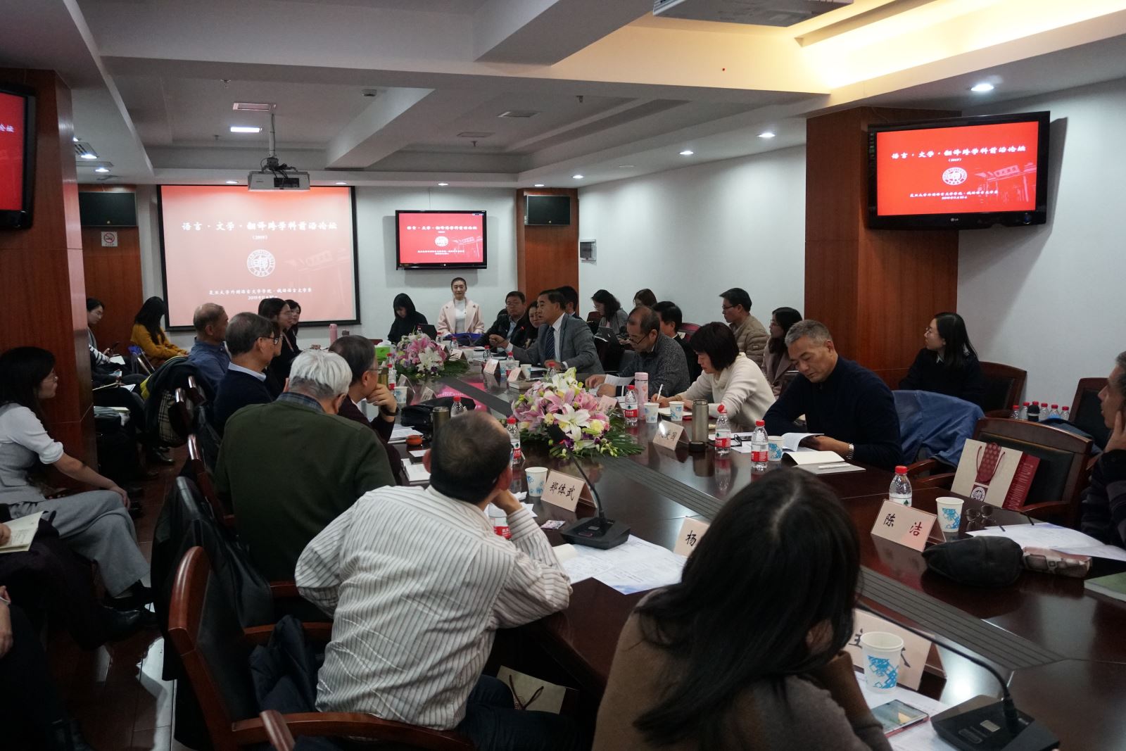 2019年11月30日 丝瓜 俄语语言文学系在文科楼220会议室隆重召开了“语言·文学·翻译跨学科前沿论坛(2019)”。来自首都师范大学、苏州大学、黑龙江大学、天津外国语大学、上海外国语大学、上海政法学院及 丝瓜 中文系、英文系、俄文系的专家、学者应邀出席了会议。