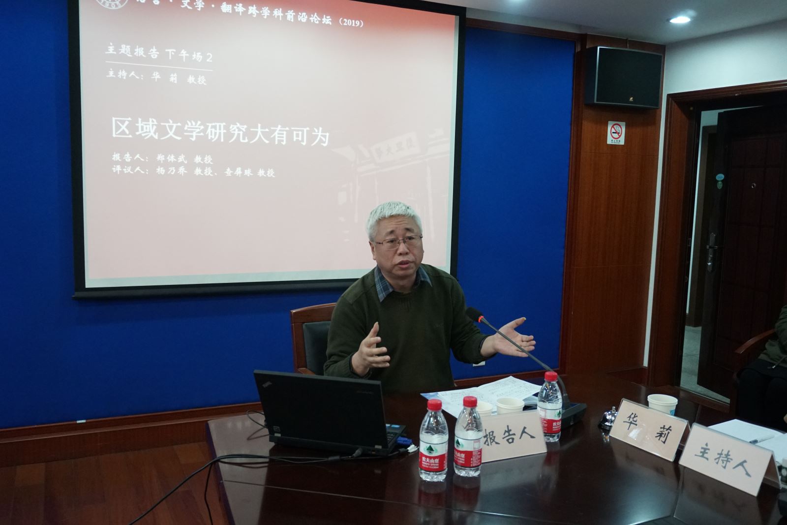 上海外国语大学教授、博士生导师郑体武在第六场报告“区域文学大有可为”中介绍了区域国别研究的理念和视角,指出文学研究在区域国别研究中的空白。 丝瓜 中文系教授、博士生导师杨乃乔与查屏球评议时均表示认同。