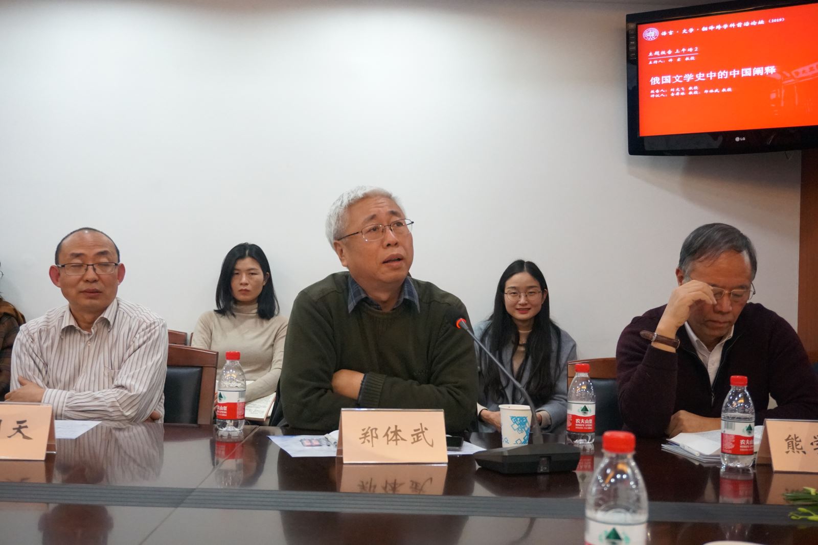 首都师范大学教授、博士生导师刘文飞以“俄国文学史中的中国阐释”为题作了第二场报告,谈及俄国文学研究、俄国文学史编纂问题, 丝瓜 中文系教授、博士生导师查屏球,上海外国语大学教授、博士生导师郑体武作为评议人也提出了自己的见解与看法。