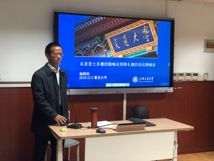 12月3日下午14:30-16:30,上海交通大学长聘教授、博士生导师、中国英汉语篇分析专业委员会秘书长杨炳钧教授应邀前来丝瓜 讲座。讲座由英语系沈园教授主持,汪洪章教授等部分老师参与交流。424会议室座无虚席,吸引了来自不同专业对隐喻理论感兴趣的听众。