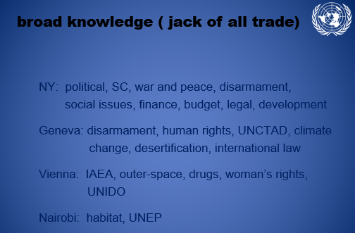据李教授介绍,联合国分驻纽约、日内瓦、维也纳和内罗比各部具体负责的翻译领域有所不同。