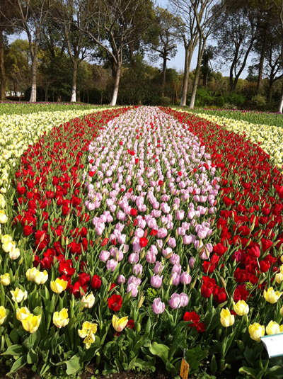盛春三月,正是花港郁金香展示季。郁金香花卉新品展示区占地面积28公顷,种植了320万株郁金香,品种达300多种。放眼万紫千红的苗圃,使人不仅感叹花卉专家的智慧和才干,他们是我们的榜样,他们的成就对我们在自己的工作岗位上奋斗创新是一种鞭策。
