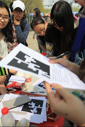 福利自是必不可少。各个语种都准备了精致的印章,这是给每个游戏胜利者的“勋章”,集齐六个语种的“勋章”便可至主席台进行抽奖活动,奖品大至特等奖LINE吉祥物,小至纪念奖外文徽章,打着“100%中奖”的旗号,同学们顿时化身“集章控”,“辗转奔波”于各个摊位,最后“满载而归”。