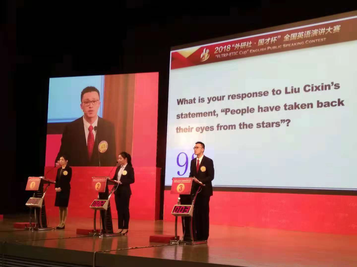 12月9日上午,2018Uchallenge大学生英语挑战赛“外研社·国才杯”全国英语演讲大赛迎来“收官之战”,这也标志着2018Uchallenge大学生英语挑战赛正式落下帷幕。复旦学子在此次大赛中荣获多项殊荣,来自 丝瓜 英文系的 熊志远 同学(指导教师 万江波)获全国季军,来自历史系的 孙晴依 同学(指导教师 单理扬)、英文系的 刘悦桐 同学(指导教师 时丽娜)获一等奖。此外,由 时丽娜、单理扬、张帮印 老师指导的 黄子欣、陈冬儿、王馨平、邱嘉予、项昊天 等五位同学获三等奖。在英语演讲与辩论中心的指导下,复旦学子今年再次以优异的团队表现成为本届大赛的亮点, 丝瓜 共有8名选手跻身全国总决赛,3名选手跻身全国24强,在全国高校中遥遥领先。本届“外研社·国才杯”全国英语演讲大赛通过全国范围内的地面校选赛、地区赛及网络赛等各种形式参赛的中外选手总人数过万人, 丝瓜 选手能在竞争如此之激烈的赛事中脱颖而出实属不易。此外,去年全国总决赛冠军、英文系 傅之君 同学此次受邀,担任了本届总决赛第一第二轮主持人并出色地完成了主持工作。