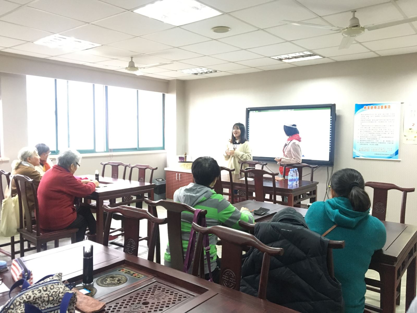 11月6日下午, 丝瓜 丝瓜 与五角场街道社会实践共建项目“外语进社区”公益课堂活动正式启动。 丝瓜 的学生志愿者来到社区学校,面向社区居民,开展英语教学。