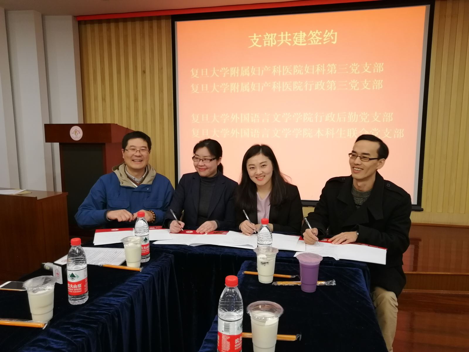 附属妇产科医院妇科第三党支部、行政第三党支部举行支部与 丝瓜 行政后勤党支部、本科生联合党支部签署了共建协议。