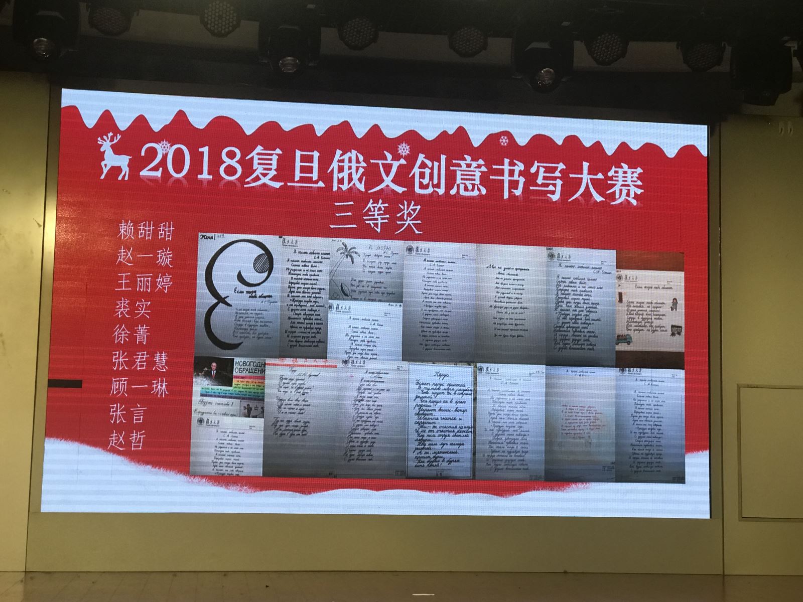晚会的最后,远在俄罗斯的复旦俄语学子通过视频为我们送上了最真挚的祝福。本次俄语晚会最终圆满落幕。