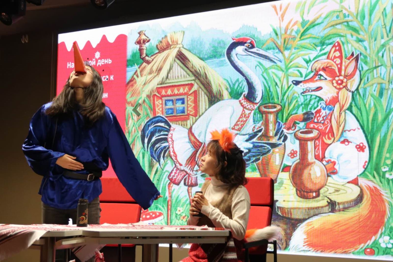 晚会的开场以合唱«Круто поступил ты в Фудань»拉开帷幕。紧接着是普希金诗歌朗诵、歌曲«Миллион алых роз»和«Парень»,几个节目带我们领略了俄罗斯音乐的独特魅力。随后的情景剧«Лиса и Жулавль»生动欢乐,而小组唱«Зимний сон»、具有中国特色的舞蹈和葫芦丝表演则深深感染了观众,«Зимняя ночь»更让我们在寒冷的冬日里感受到阵阵温暖与喜悦。