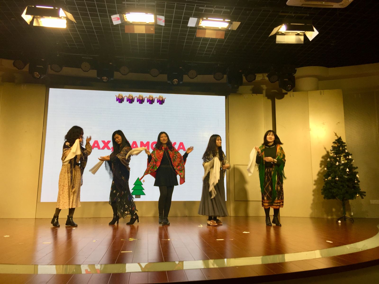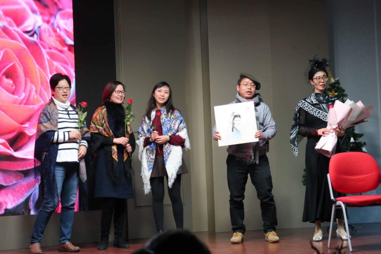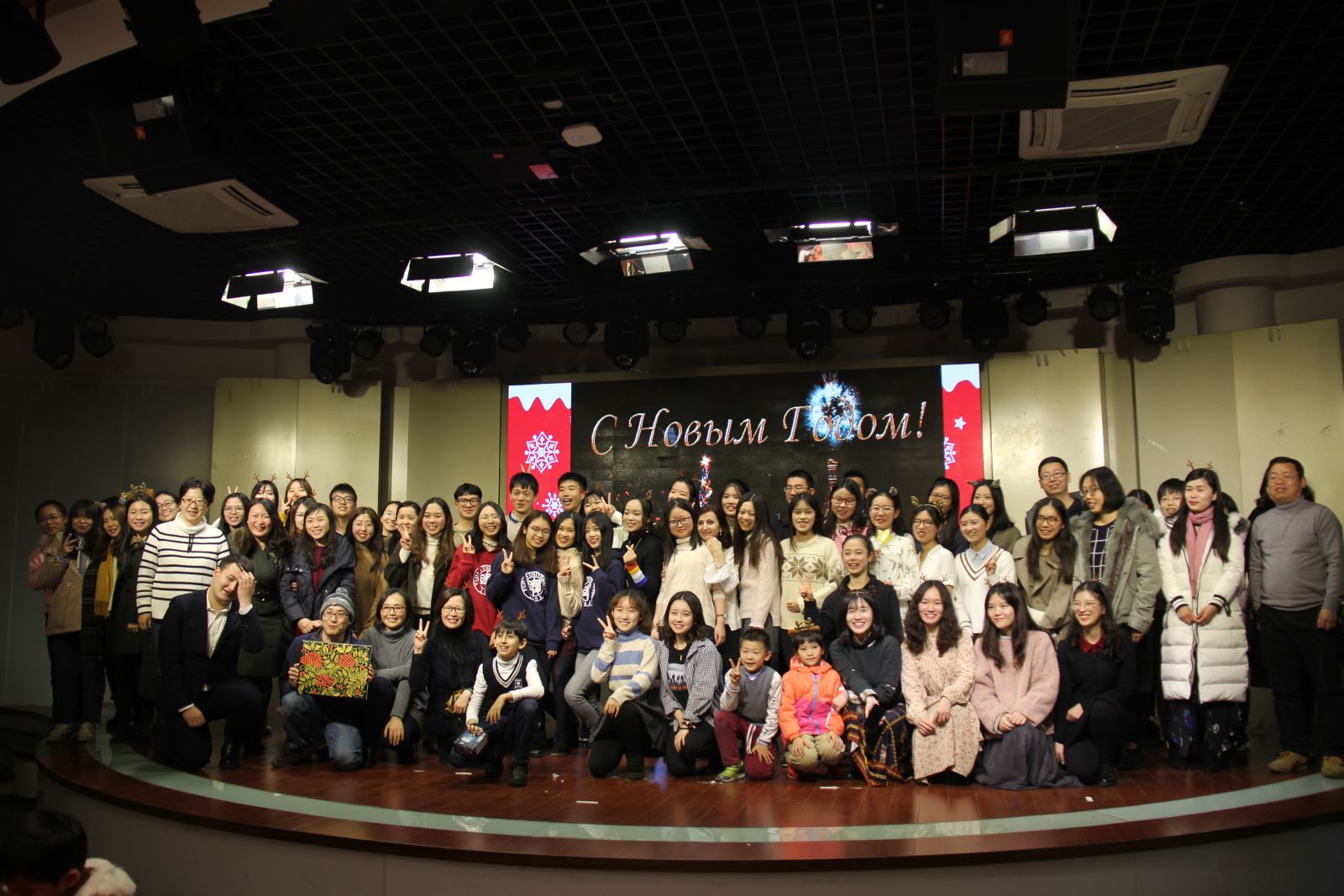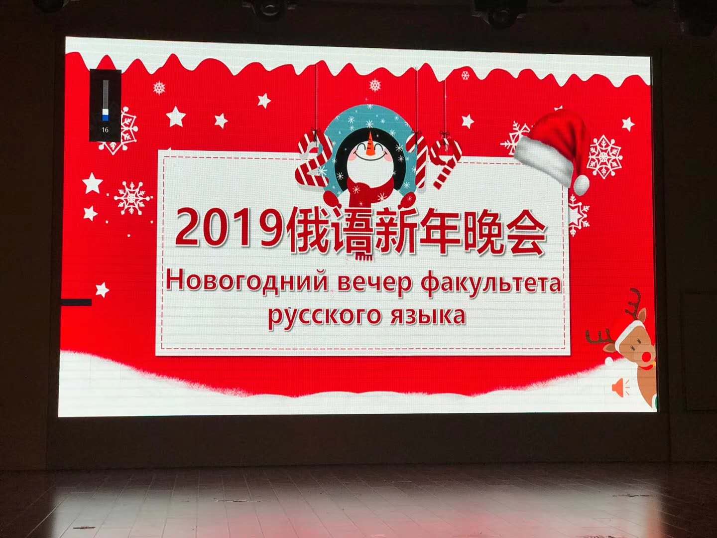 2018年12月16日晚,俄语新年晚会于多功能厅举办。来自俄文系的老师同学出席了本次晚会。晚会内容丰富多彩,包含了朗诵、舞蹈、歌唱、表演等。