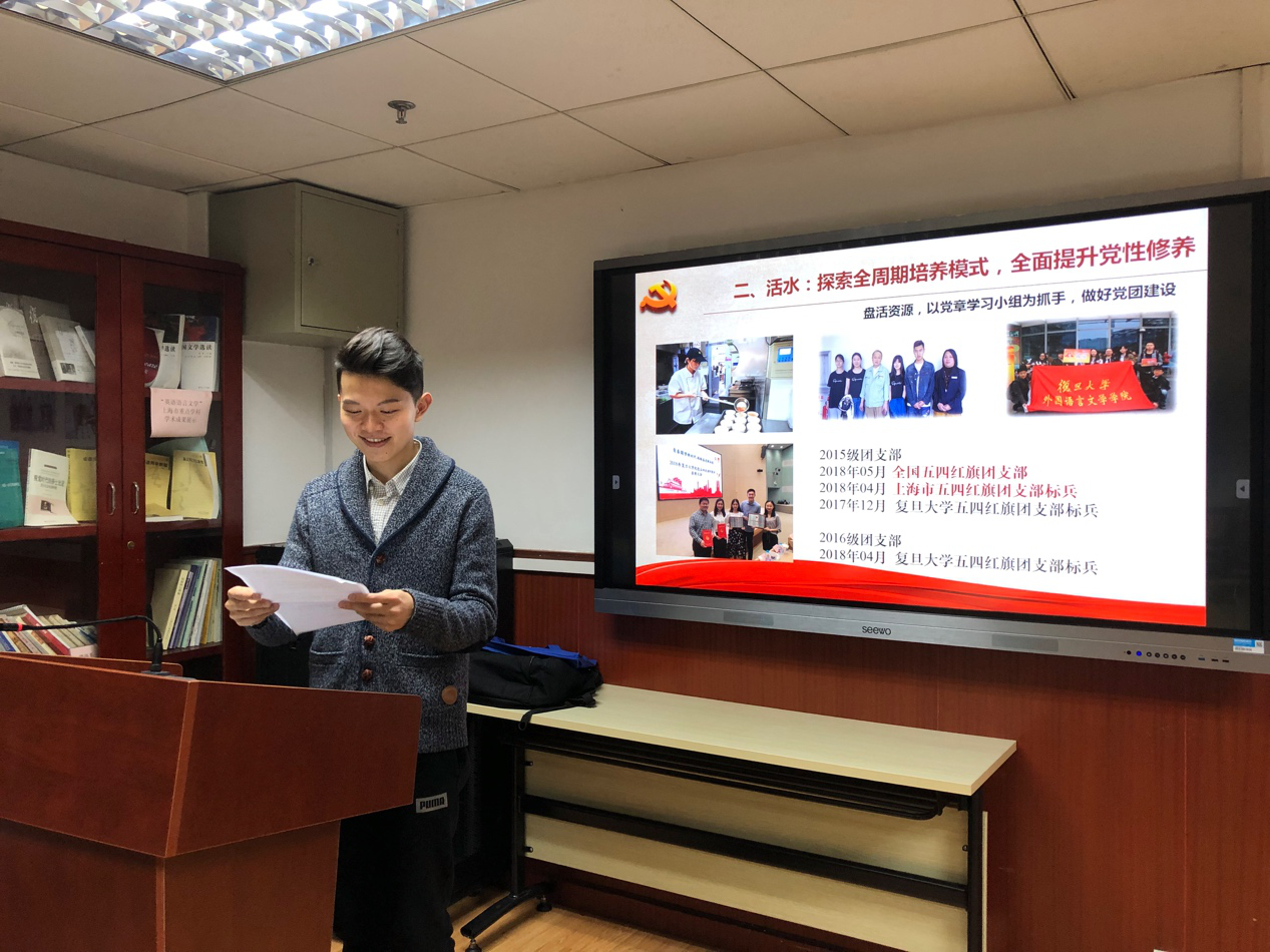 本科生联合党支部围绕党员发展基础工作和党章学习小组活动开展情况介绍了支部工作,分享以党建引领工作的理念。本科生毕业班党支部围绕“引水、活水、出水”,介绍了支部在制度建设、探索全周期培养新模式、贯彻“知行合一”工作理念三个方面所作的工作。2018级硕士生党支部从队伍建设、理论活动、考察实践等方面,介绍了加强支部凝聚力建设、完善支部制度建设、开展特色实践活动项目等支部工作。2017级硕士生党支部围绕“政治上有定力、组织上有活力、服务群众有能力”,介绍了支部建设理念和特色做法。2016级硕士生党支部围绕理论学习、志愿服务、党员发展、毕业班党员学业及就业问题四个层面介绍了支部的工作。博士生党支部以支部党员转正大会为案例切入,汇报了博士生支部开展工作和活动的情况。