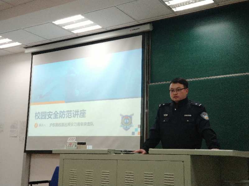 邀请上海市公安局文保分局沪东高校派出所潘阶警官对2018级本科生进行校园安全防范教育,旨在提高同学们在生活和学习中的安全防范意识,增强风险应对能力。