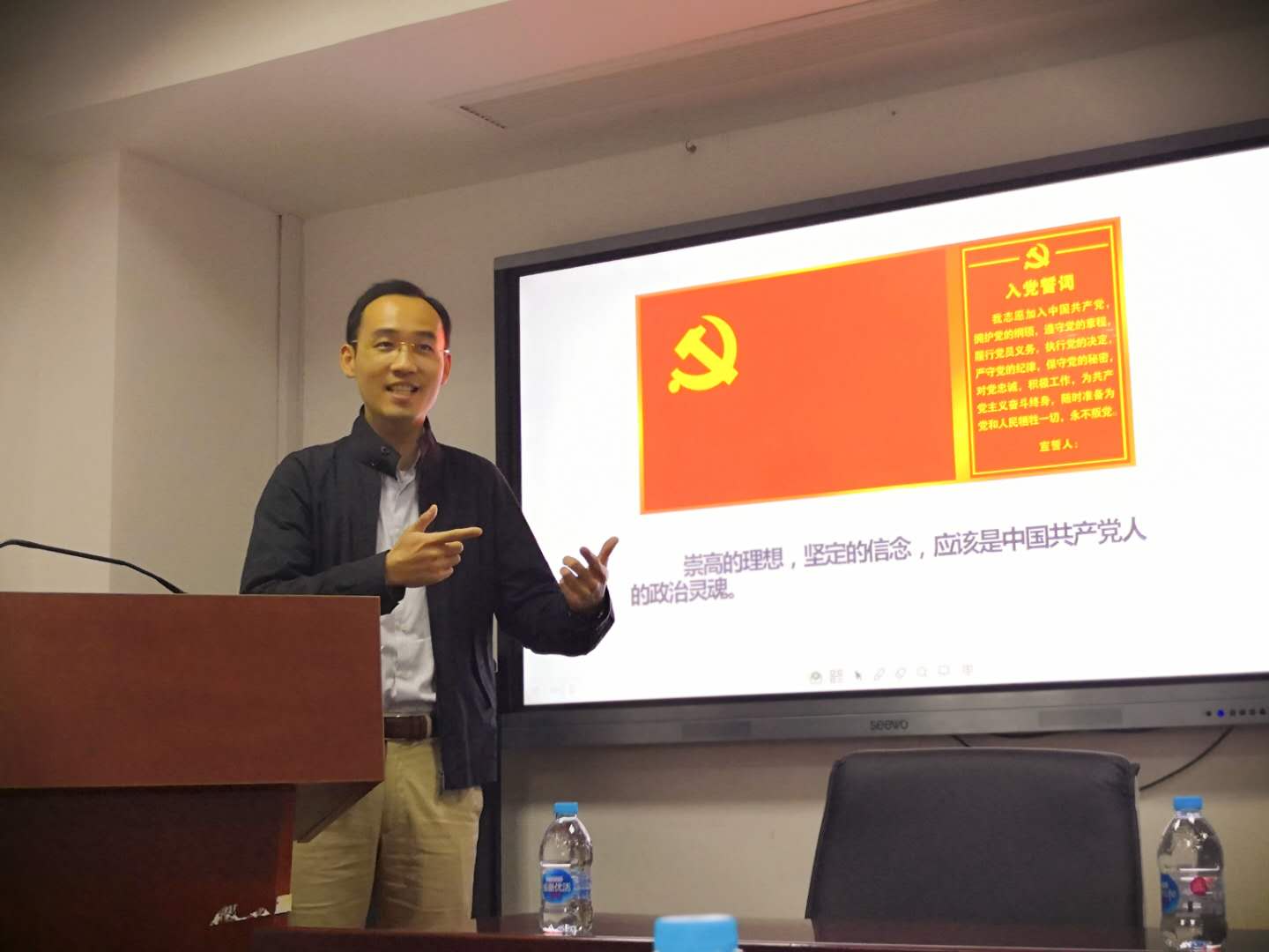 随后,学生党总支副书记、学工组长 茅盾进行了主题为“加入中国共产党你需要知道的——发展党员流程”的报告。他介绍了发展党员的流程和党支部骨干必须完成的各项工作,要求积极分子端正入党动机,严肃对待入党流程,并要求党支部骨干用更严格的标准对待每一名积极分子入党的各项事务。
