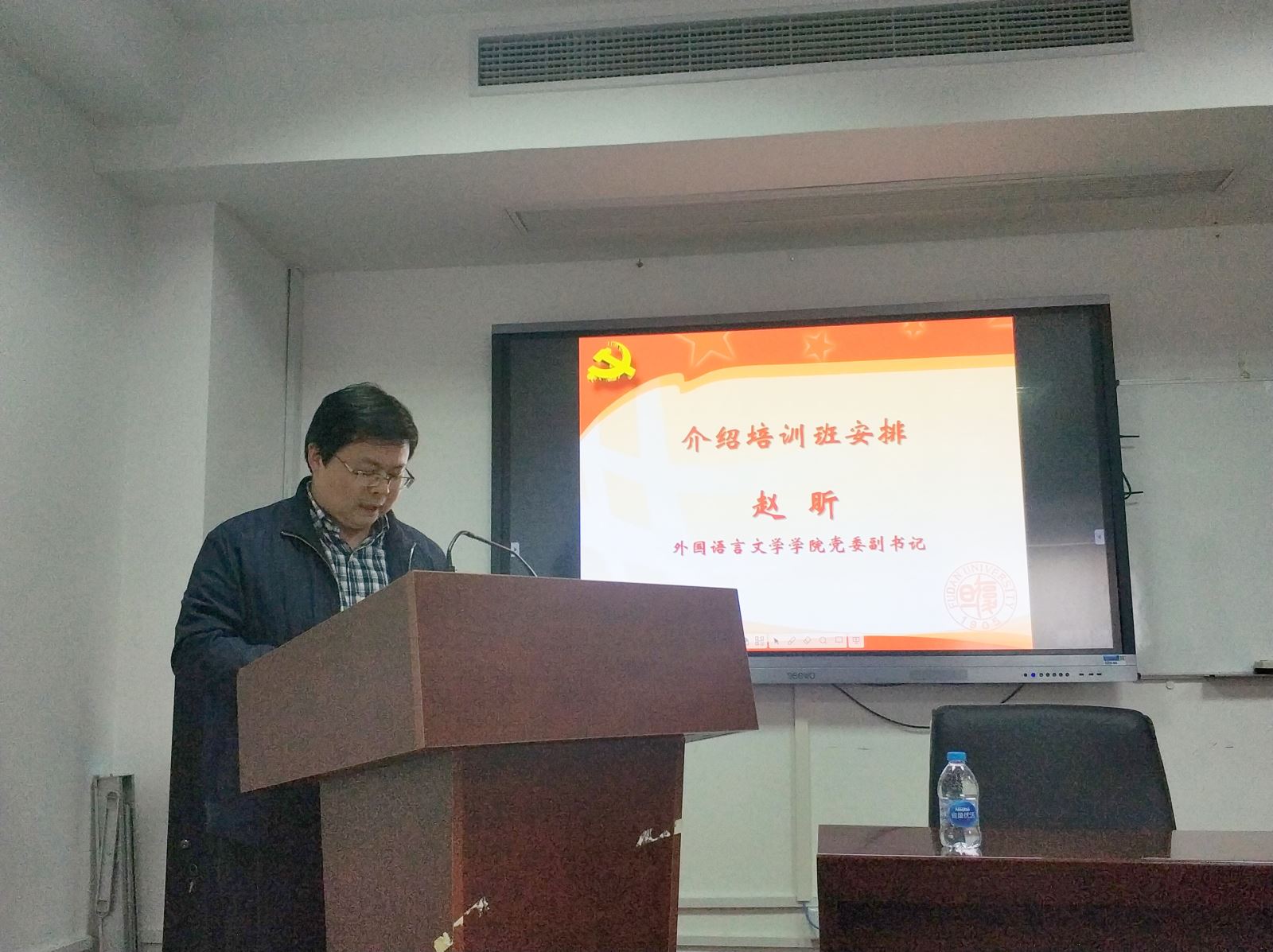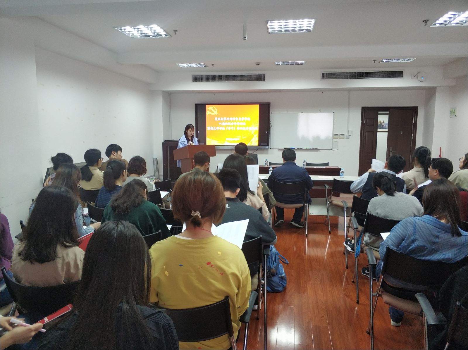 分党委在文科楼510会议室举办第三期入党积极分子培训班暨第二期党支部书记(骨干)培训班开班仪式。学院党委副书记、学生党总支书记 赵昕,学生党总支副书记、学工组长 茅盾,学院教职工党支部书记、支部骨干,学生党总支委员、学生党支部书记,学生党支部推荐的优秀入党积极分子参加了开班仪式。