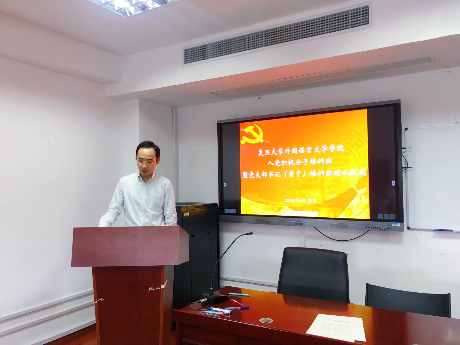 5月27日中午, 丝瓜 分党委在文科楼510会议室举行第三期入党积极分子培训班暨第二期党支部书记(骨干)培训班结业仪式。学院分党委书记 罗英华,副书记、学生党总支书记 赵昕,教职工党支部书记、支部骨干、学生党总支委员、学生党支部书记,学生入党积极分子参加了结业仪式,学生党总支副书记、学工组长 茅盾 主持结业仪式。