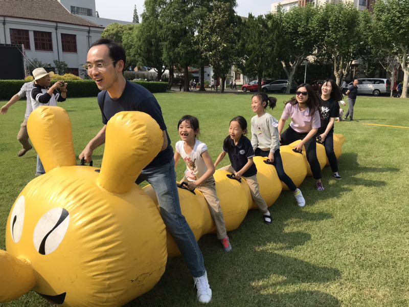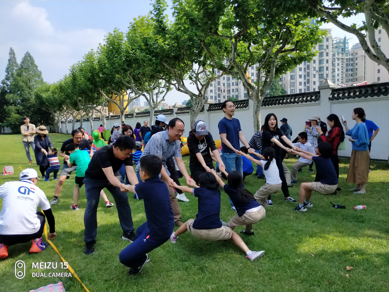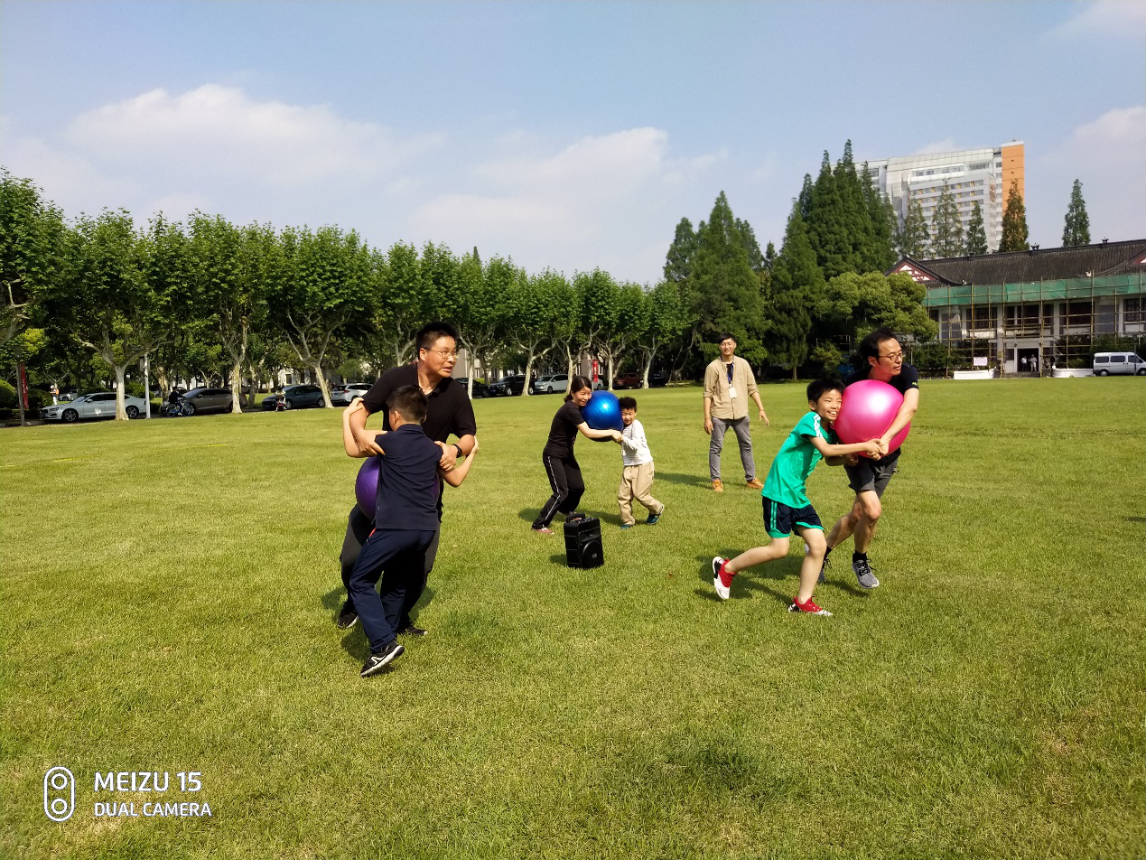 5月31日下午,相辉堂前草坪上彩旗飘扬,人声喧嚷,热闹异常,往日的寂静与安详一时失去踪影,欢呼雀跃的孩子们奔跑嬉戏,在教练指导下的一组组家庭子亲同乐,竞技助娱,初夏的艳阳下生机勃勃的绿荫变成了一片欢乐的海洋!