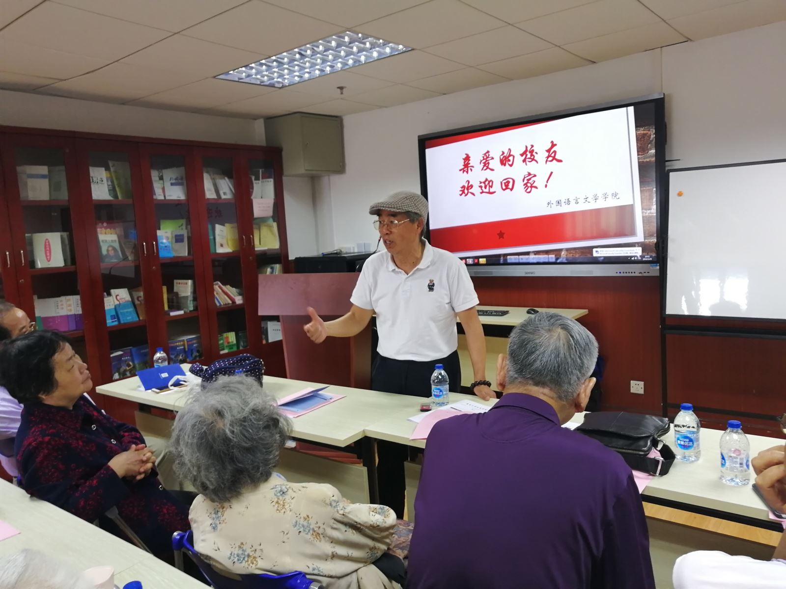 工委会会长、博士生导师马庆发教授主持活动并发表致辞。他首先欢迎从北京、贵州、浙江、厦门等地校友们,在百忙之中回到 丝瓜 ,体现了对母校的深厚感情,参加活动的校友包括英文、俄文、德文、法文和西班牙专业的校友,来自多个语言,具有一定的代表性。他提出,希望借此机会多了解 丝瓜 的发展与成就。
