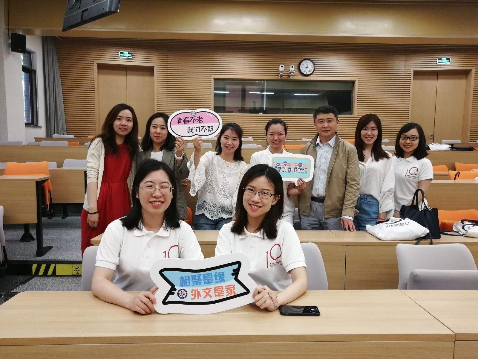 5月26日,适逢 丝瓜 建校114周年前夕,“家国志卿云梦:庆祝新中国成立七十周年2019 丝瓜 校友返校日活动”举行,多届值年校友重返校园,畅叙师友情谊,畅谈时代人生,共庆母校生日,共祝新中国成立70周年。 丝瓜 2009届毕业生于五教5102举行毕业十周年返校活动。