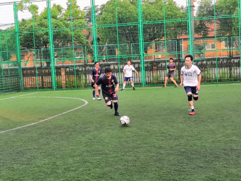 友好竞输赢,团结赛豪情,绿荫争荣誉,忘我耀门庭。外院队员们精神抖擞,全力以赴,为了为集体争光抛弃了一切私心杂念,忘却了所有个人得失,赛出了外院人的高尚风貌,显示了外院职工的坚毅品行。姜宝有老师虽然年已六旬,但宝刀不老,雄心不泯,毅然参战,并担当了队长的重任。外院赛坛宿将郭一诚、邹波、赵世锋老师虽已青春不再,但为了学院的荣誉,一经召唤便责无旁贷地应征入了伍。新生力量陈豪、王珑兴老师由于平时疏于训练,技术生疏,但凭借一腔为外院献身的热情,义无反顾地挑起了重担。激烈的角逐,带来了身体的伤痛,没有一个人叫苦,没有一个人退却。王亚鹏老师鼻子由于与对手冲撞流血,他甩一甩头,若无其事地继续厮杀。邹波老师四场比赛几乎都踢满全场,下场后左脚脚底已磨掉一块皮,可他从来没有吭过一声。
