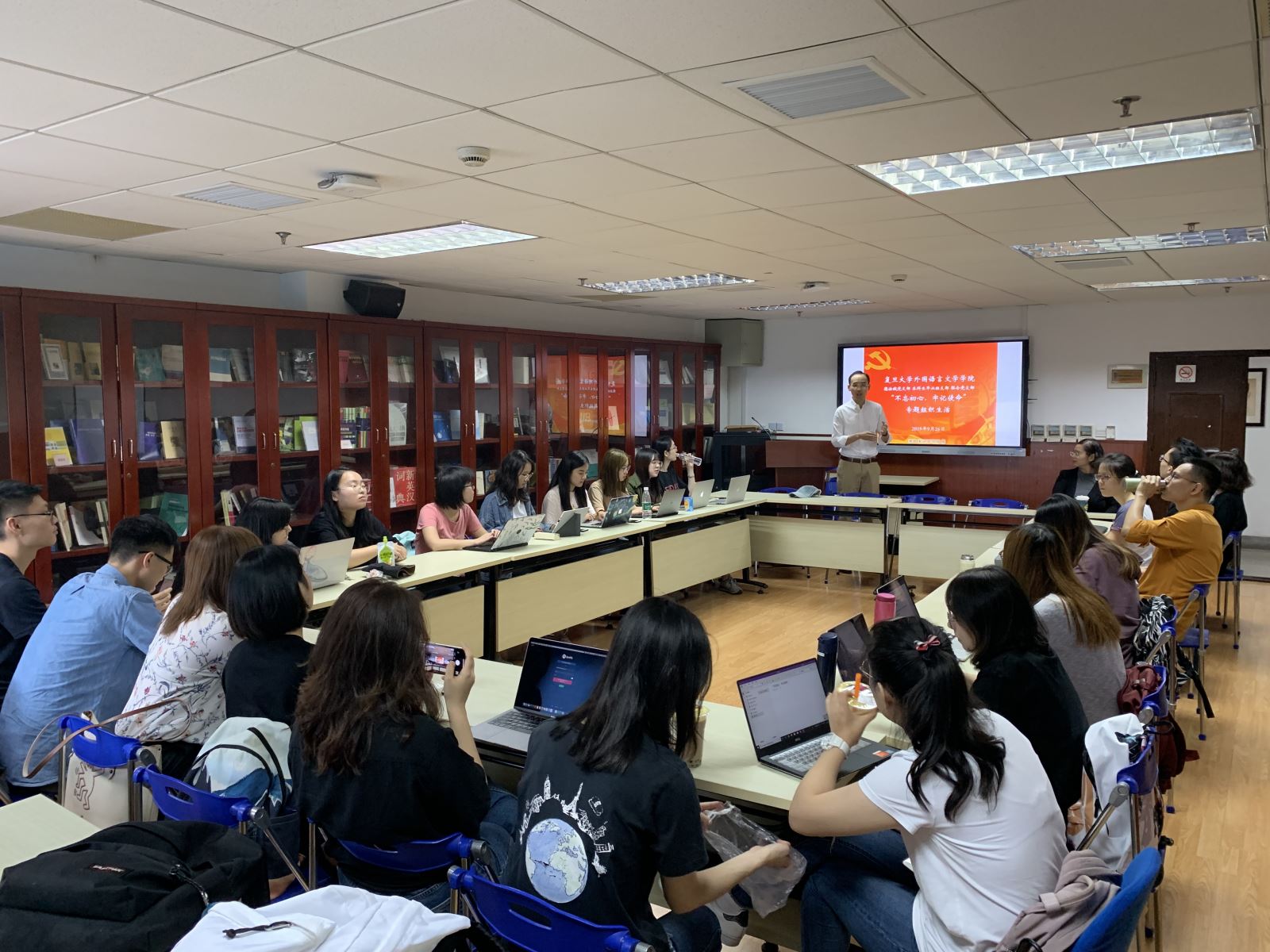 大英部本科生第一党支部组织“不忘初心、牢记使命”专题组织生活会,支部党员交流学习《习近平关于“不忘初心、牢记使命”论述摘编》的心得体会,并围绕新时代教学工作改革创新开展研讨。