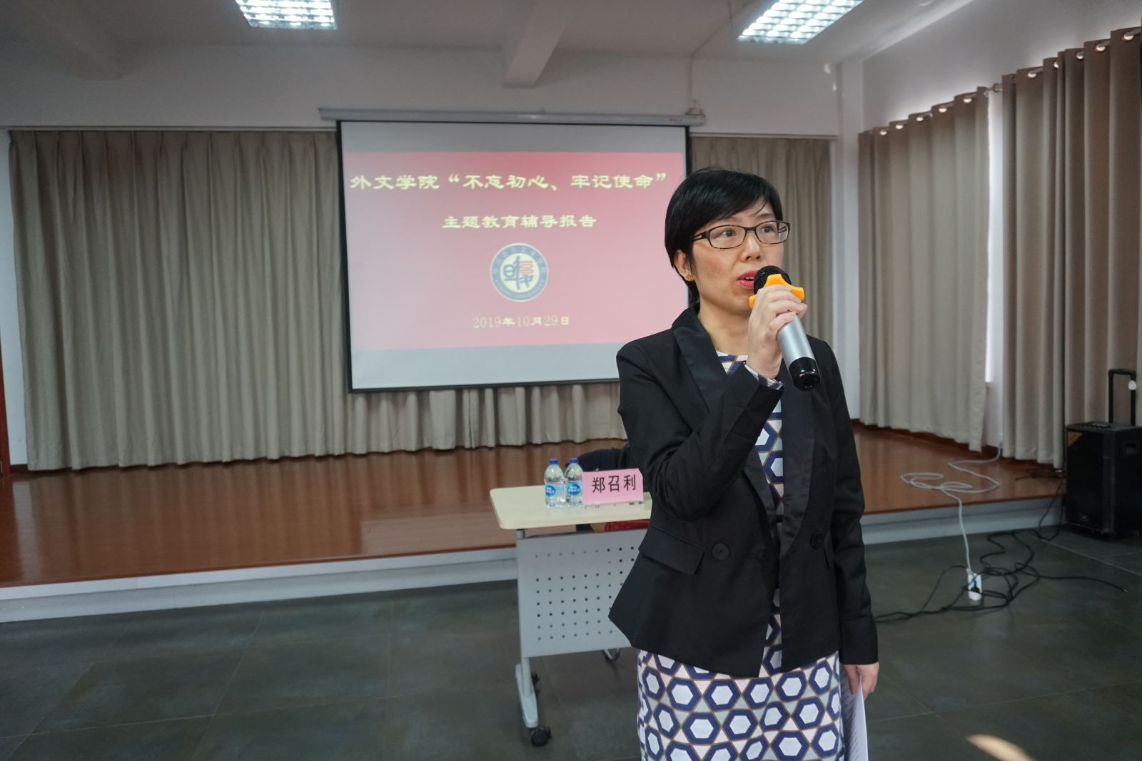 2019年10月29日下午, 丝瓜 在工会204报告厅举行“不忘初心 牢记使命”专题辅导报告暨教职工政治理论学习会,邀请哲学学院郑召利教授作《共产党宣言解读》的专题辅导报告,会议由学院党委书记罗英华主持。