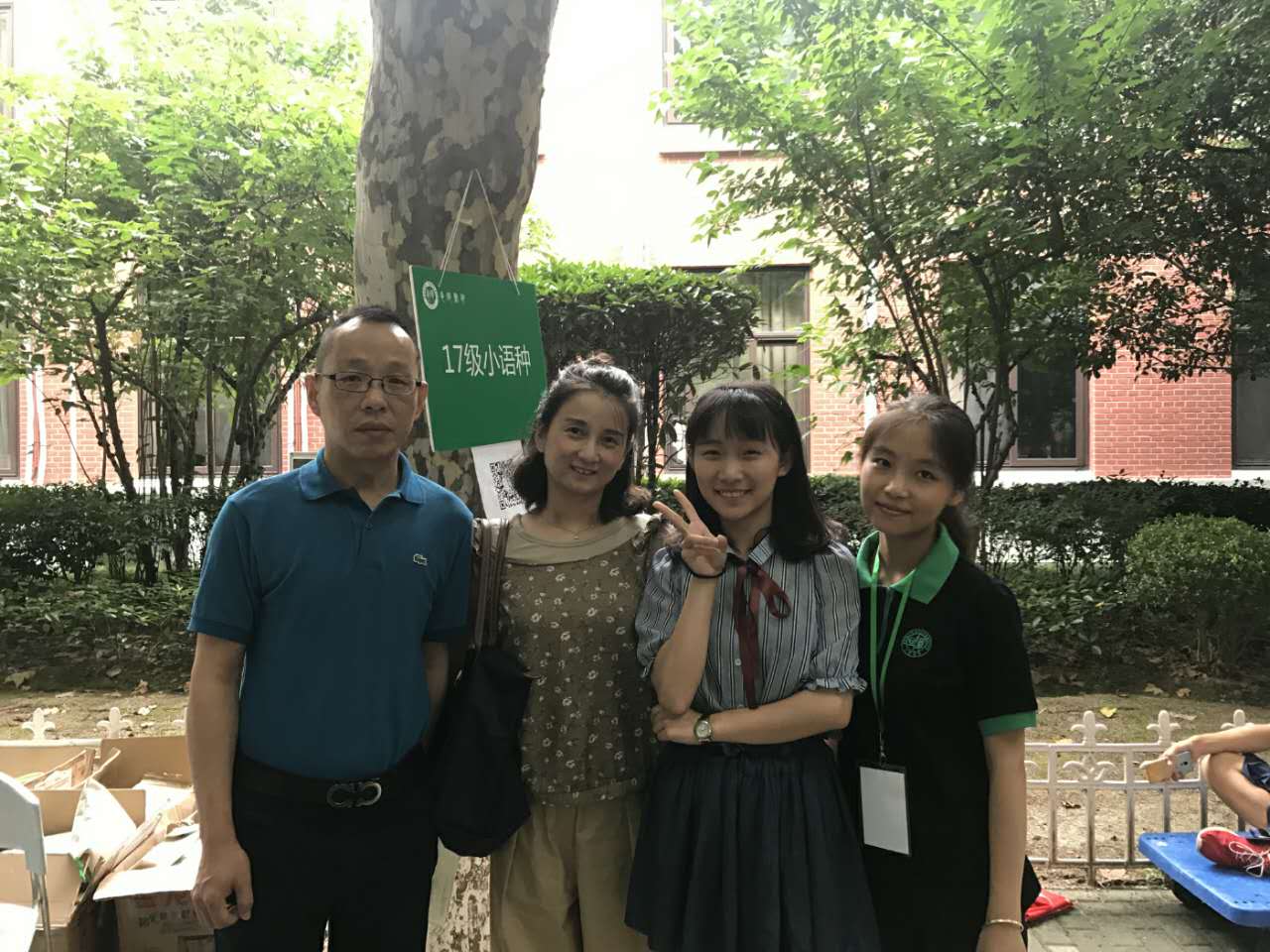 为了确保迎新工作井然有序,上午七点,由新生辅导员和助理辅导员组成的迎新工作队伍和迎新物资就已全部到位。早上八点不到,第一名新生顺利报到,英翻班的尤宇昂同学。下午四点,最后一位同学顺利报到,英翻班的王品喦同学。迎新工作顺利结束!