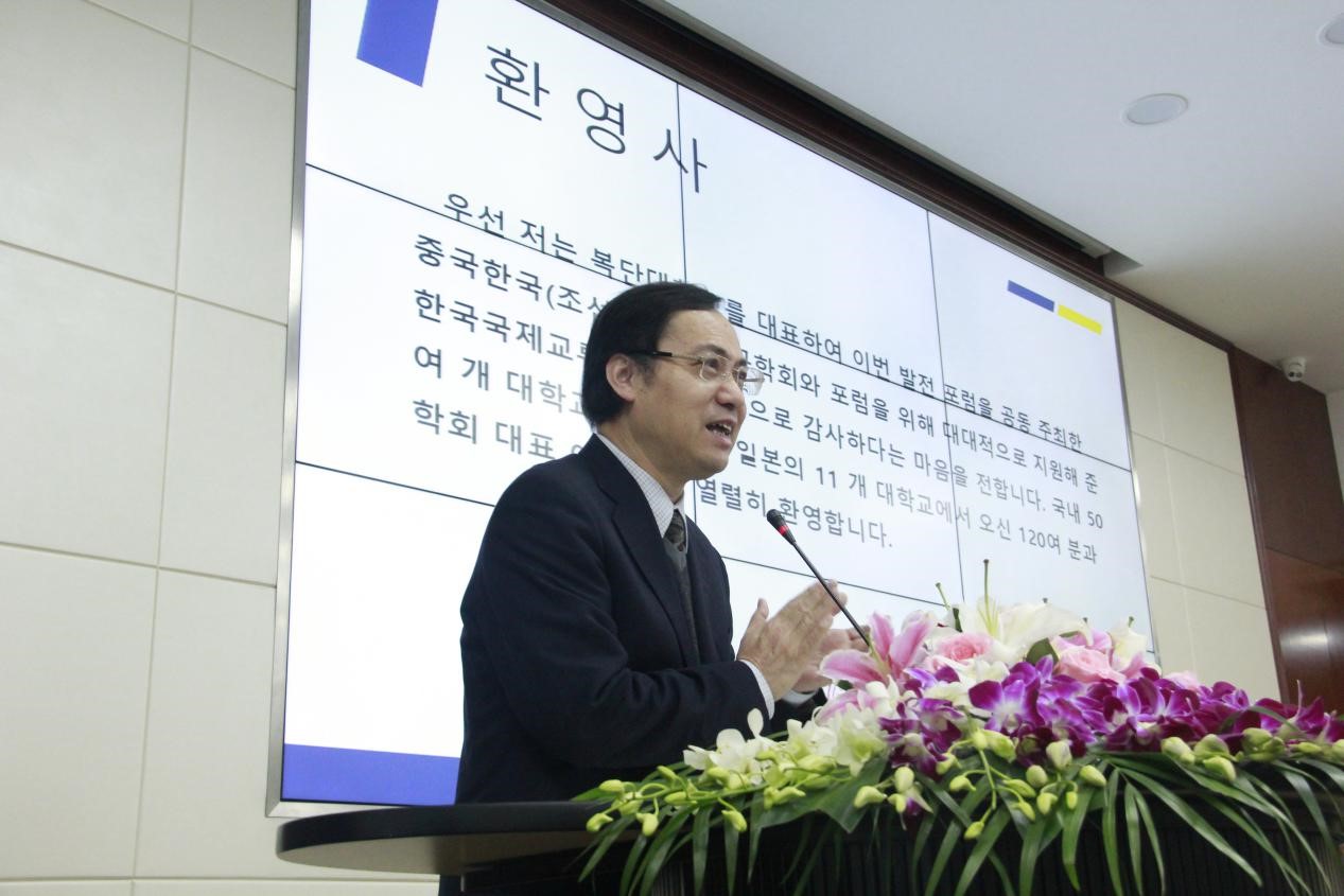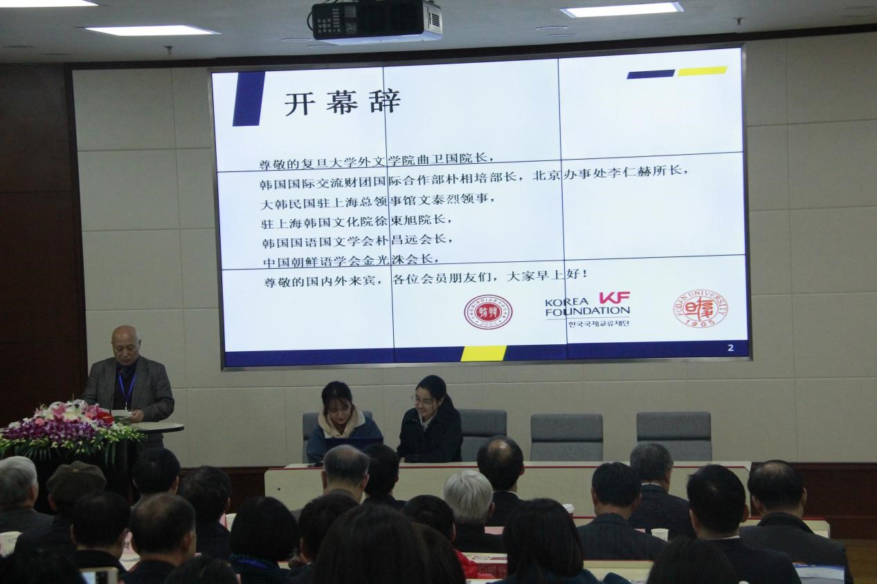 11月19日上午举行的开幕式上, 丝瓜 丝瓜 院长曲卫国、中国韩国语教育研究学会会长、 丝瓜 韩文系教授姜宝有、大韩民国驻上海领事馆文化领事文泰烈、韩国国际交流财团国际协力室室长朴相倍、韩国国语国文学会会长朴昌远以及中国朝鲜语学会会长金光洙分别致辞,充分肯定了本次论坛对中国的韩国语文教育研究事业以及中韩两国发展友好合作关系的积极意义。