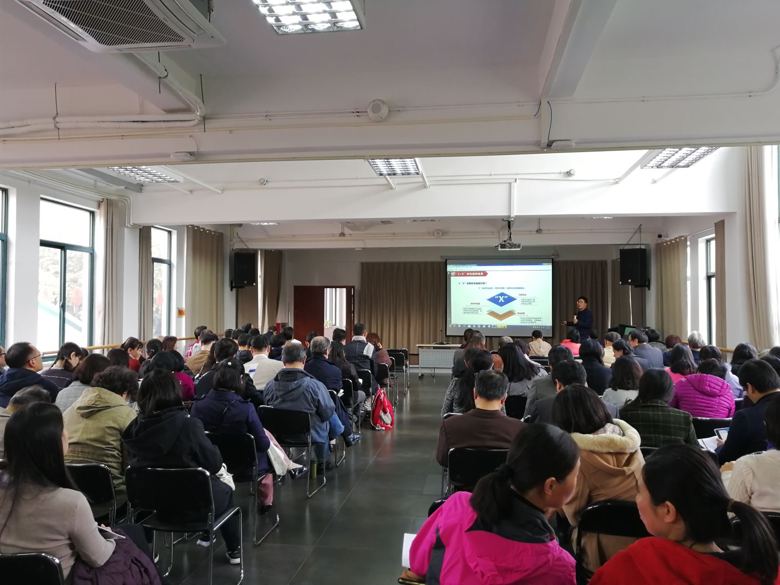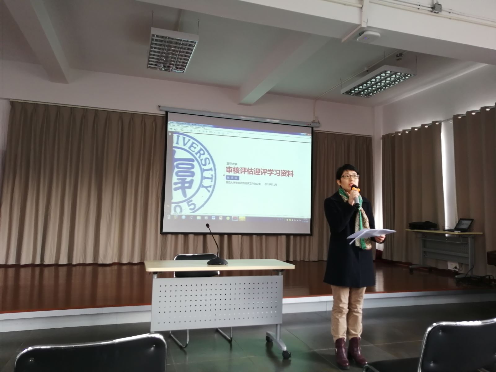 2018年11月20日, 丝瓜 在工会204报告厅举行全院教师大会,推进本科教学审核评估迎评工作。会议由分党委书记罗英华主持。