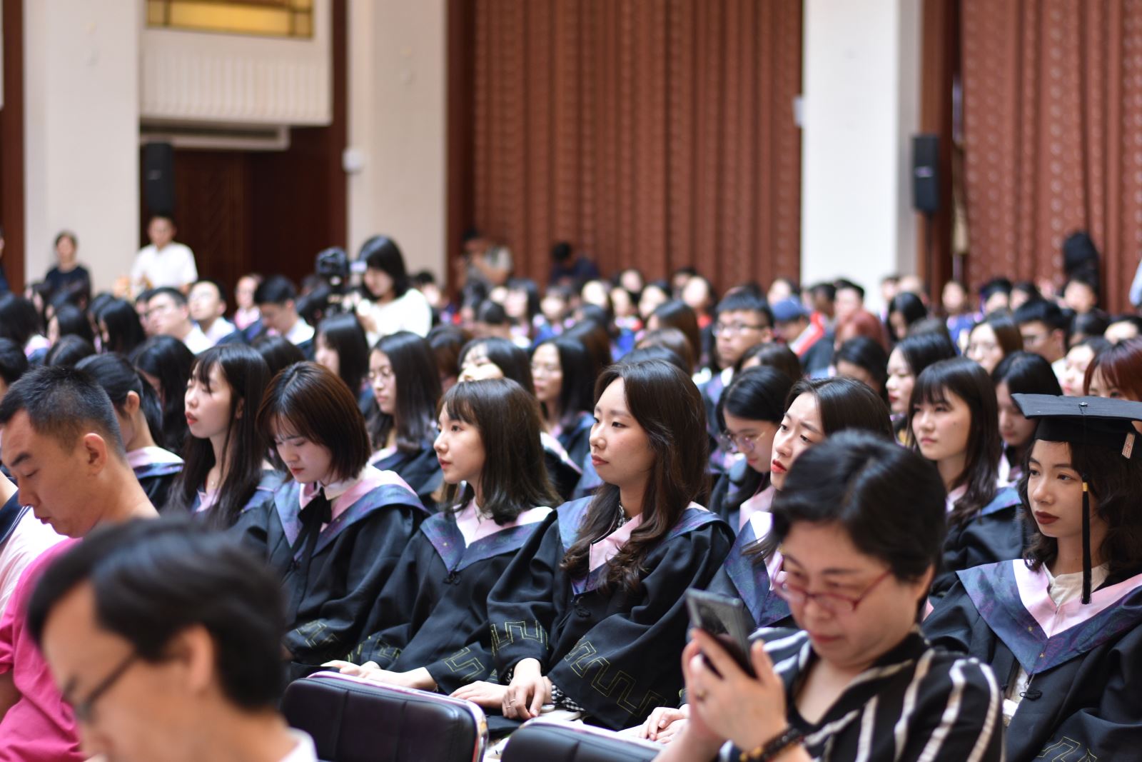 2019年6月17日下午, 丝瓜 在光华楼13楼报告厅隆重举行2019届学生毕业典礼。学院党政领导、教师代表、毕业班辅导员和来自全国各地的学生家长出席典礼, 丝瓜 2019届本科、硕士、博士毕业生近200人参加典礼。