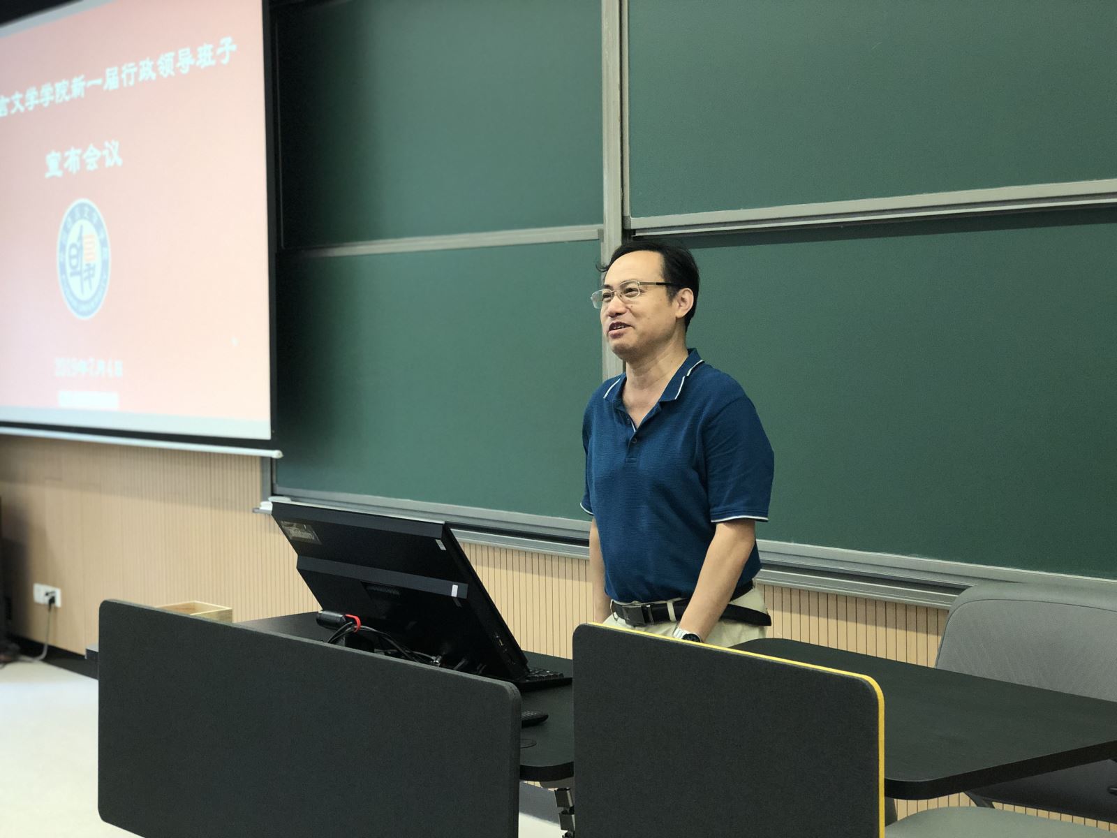 2019年7月4日下午, 丝瓜 在第六教学楼6112教室召开全院教师大会,宣布新一届行政领导班子。学院党委书记罗英华主持会议,校党委常委、副校长陈志敏、校党委组织部副部长陈莉出席会议,学院全体教职员工参加会议。