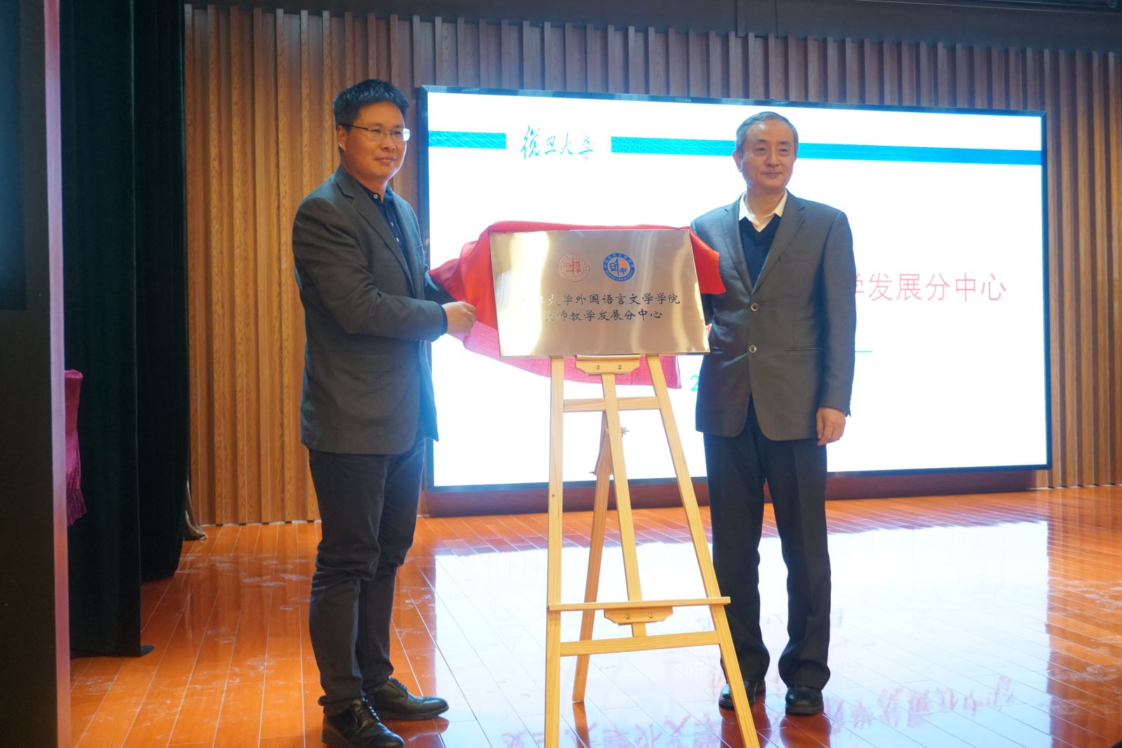 陆昉主任与高永伟院长为 丝瓜 丝瓜 教师教学发展分中心揭牌。
