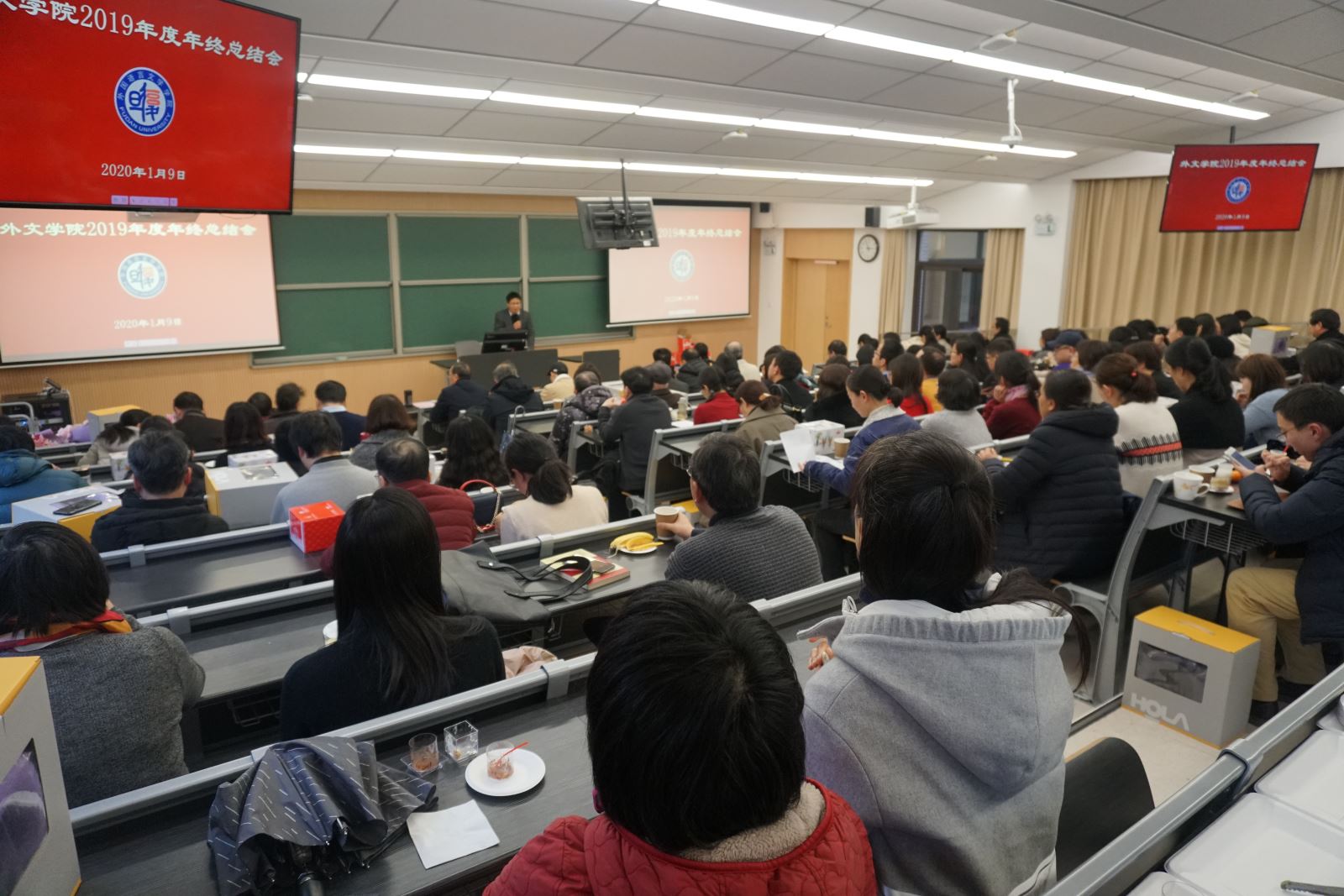 2020年1月9日下午, 丝瓜 在第六教学楼6112教室召开全院教师大会,会议由学院分党委书记罗英华主持。