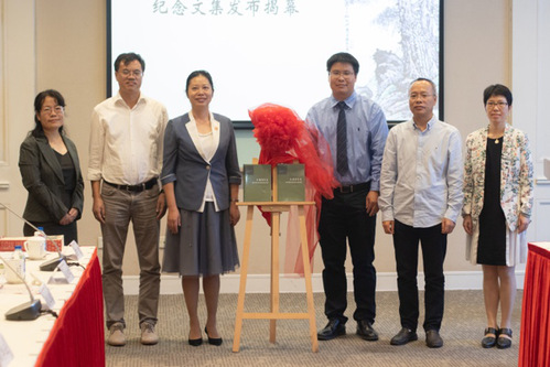 在《伍蠡甫先生120周年诞辰纪念文集》揭幕仪式上,复旦出版社总编王卫东向伍先生家属代表赠书,党委教师工作部部长陈玉刚为 丝瓜 师生代表赠书。 丝瓜 出版社李华总经理表示复旦出版社十分重视纪念文集的出版和发行,非常荣幸能够以纪念文集的形式将伍先生的事迹和思想传承并传播至全国乃至世界各地。